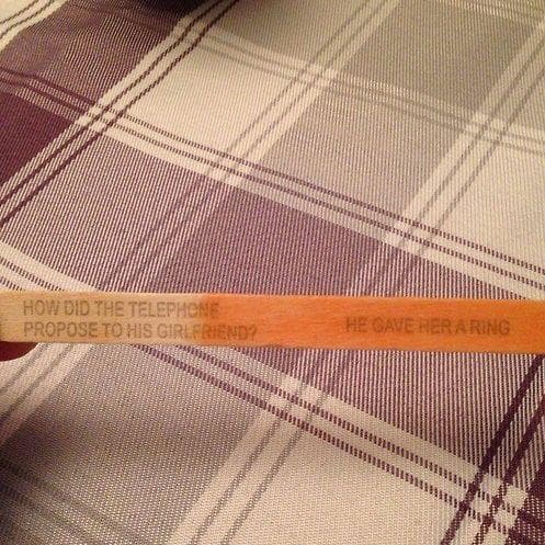 Universal code word for guys when they are erect. 6 was afraid of 7, cause 7, ate, 9. The popsicle were good though. In fact, here's a freebie, where do cantaloupes spend their summer … There are hints included , if you need them and the answers are provided. Created by imthefooifunniest gentleman evera community for 8 years. All those burning questions you had are still gleefully ignored. It's never too cold for popsicles, and you're never too old for popsicle stick jokes. Whoever writes the jokes that end up on popsicle sticks clearly has no idea what he's doing. The joke is hilarious, but many people. Why did the octopus laugh? Can you pick the answers to these 'hilarious' popsicle stick jokes? What is the best joke you have heard that was on the end of a popsicle stick?
